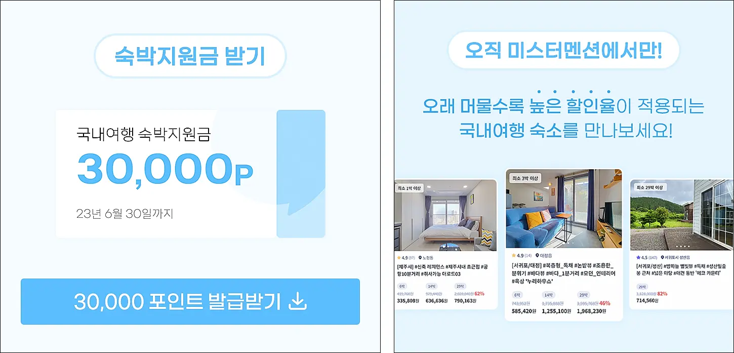 미스터멘션 숙박지원금 3만 포인트