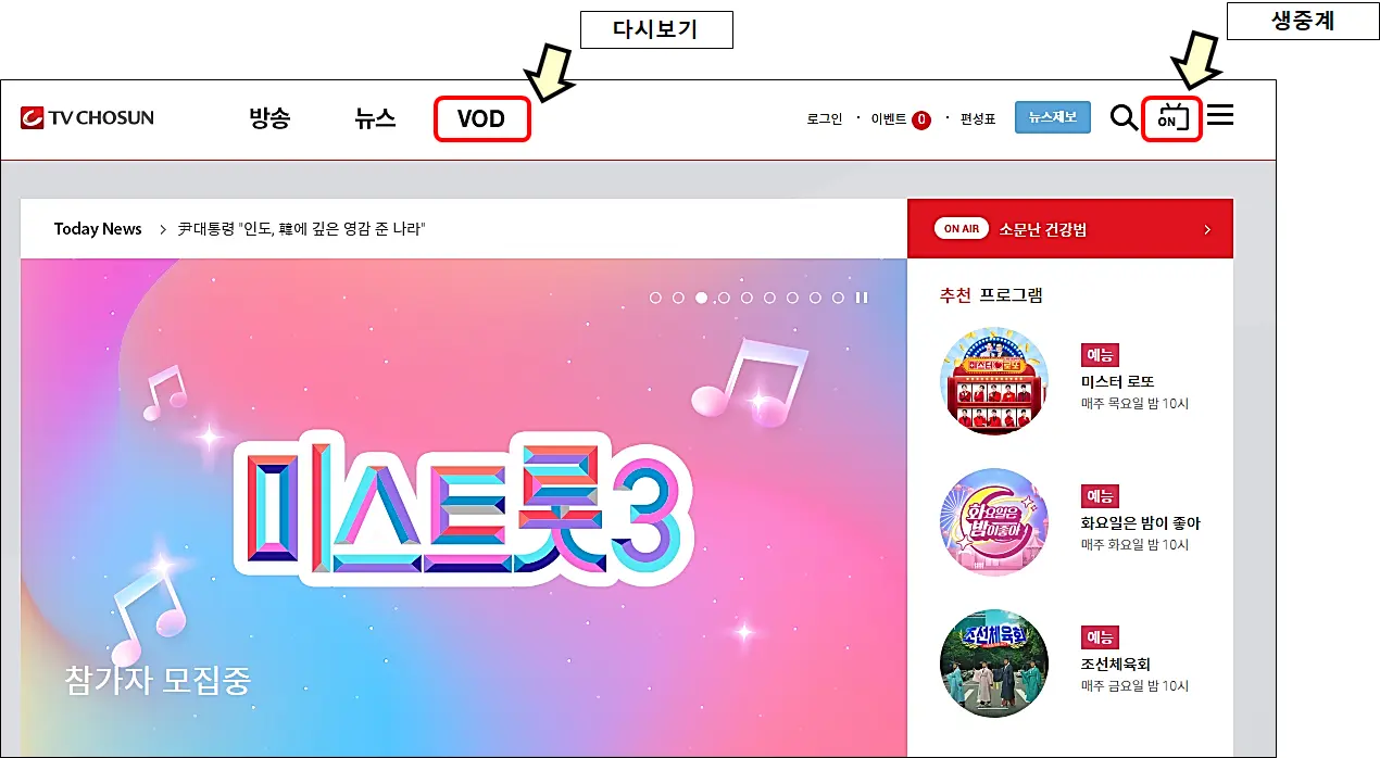 TV조선 생방송 시청 바로가기