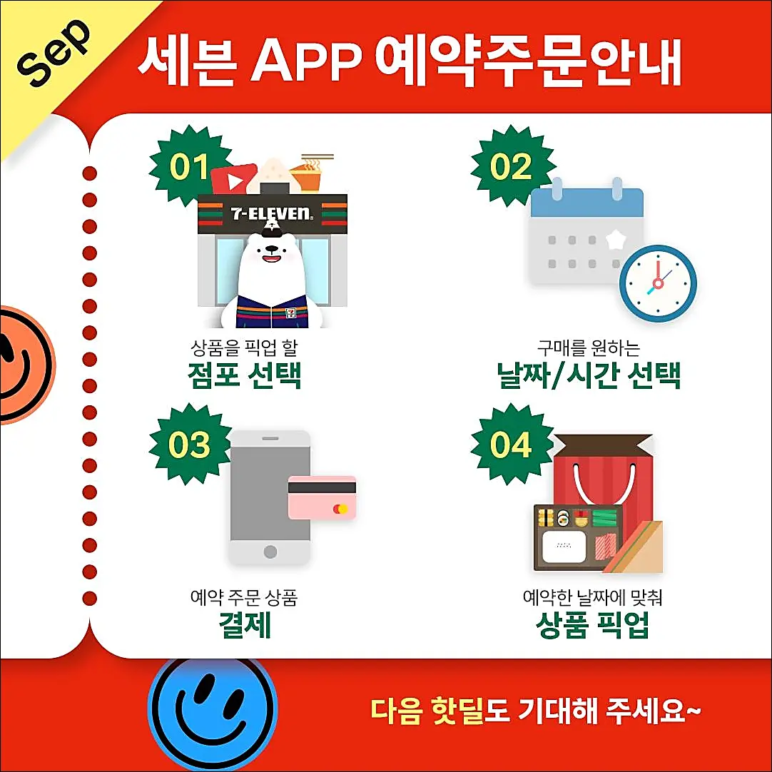 - 예약한 날짜에 맞춰 해당 세븐일레븐 방문하여 상품 픽업