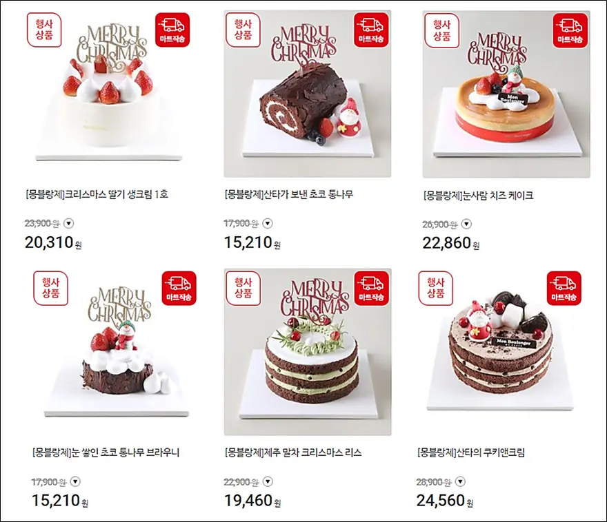 크리스마스 케이크는 굉장히 다양한 채널에서 판매가 되고 있는데 연말 크게 장사가 되는 아이템이다보니 대부분의 유통채널에서 집중적으로 관리하는 아이템이라고 볼수 있습니다.